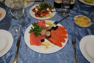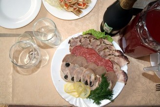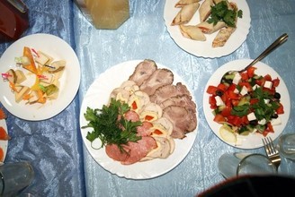 Меню для банкета составляется отдельно для каждого повода, совместно с заказчиком. Учитываются все пожелания, вплоть до способа подачи блюд. Для гостей может быть организован банкет или фуршет, а также все угощения могут быть представлены в виде шведского стола.